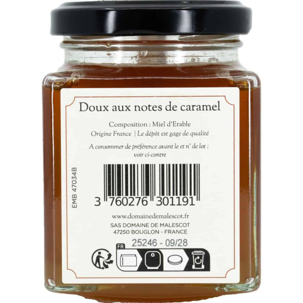 Miel d'érable des Ardennes récolté par Les Abeilles de Malescot. Pot de 250 g.
